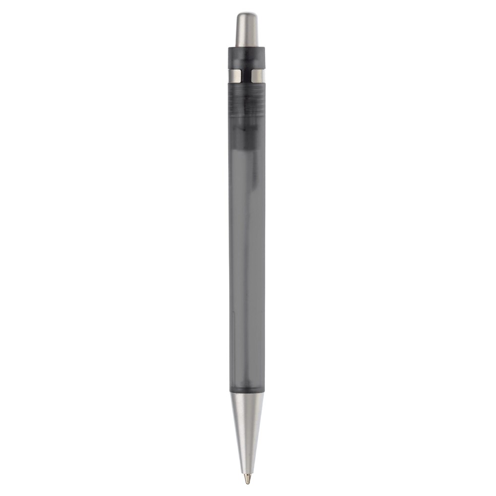 Transparenter Kunststoffkugelschreiber mit Metallclip und blauschreibender mit X20-Mine.