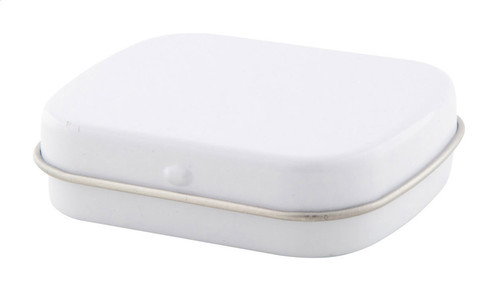Rechteckige Minzdose aus Blech mit ca. 25 g Minzbonbons. mehr