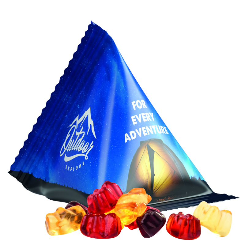 Fruchtgummi Tetraeder, Folie weiß, Trolli Fruchtgummibären, 30% Fruchtsaftqualität