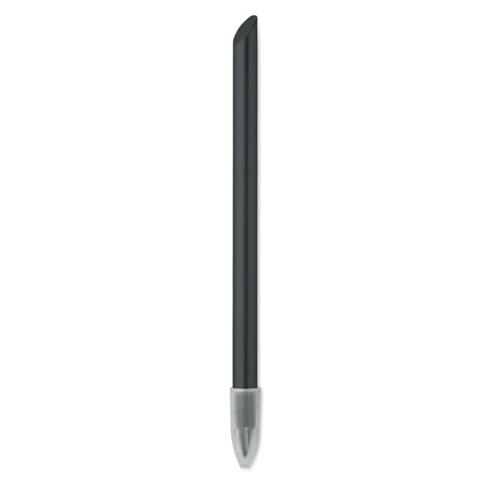 Langlebiger Stift aus recyceltem Aluminium ohne Tinte. Der Stift schreibt mittels Grafitspitze, die durch eine Kunststoffkappe geschützt ist.