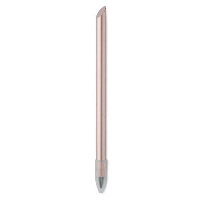 Langlebiger Stift aus recyceltem Aluminium ohne Tinte. Der Stift schreibt mittels Grafitspitze, die durch eine Kunststoffkappe geschützt ist.