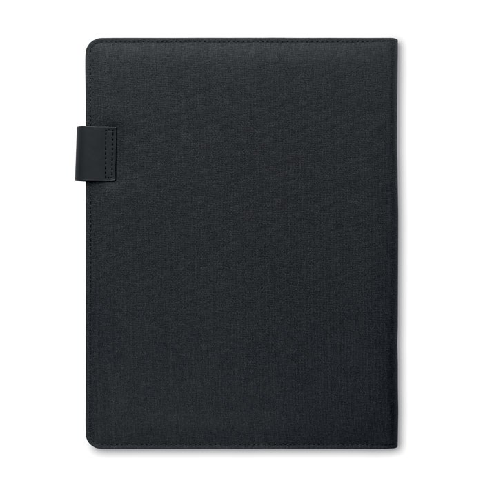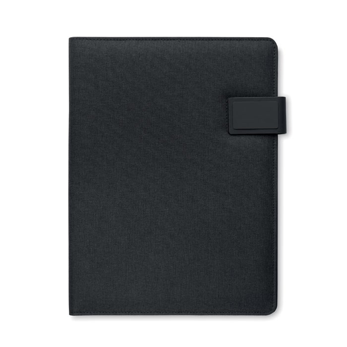 DIN A4 Konferenzmappe mit Cover aus Leinen und PU. Notizblock mit 20 Blatt liniertem Papier, diversen Innenfächern, Stiftschlaufe, 5000 mAh Powerbank und 15W magnetisches kabelloses Ladegerät. Magnetischer Verschluss.