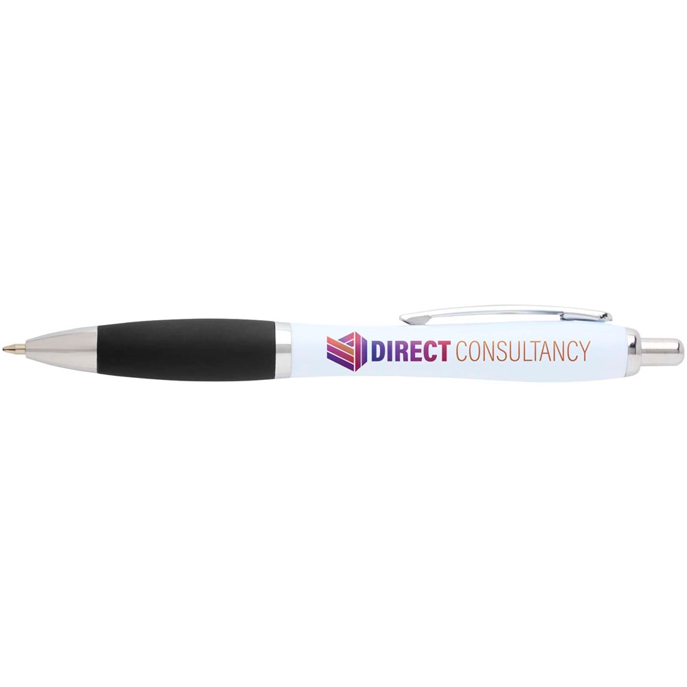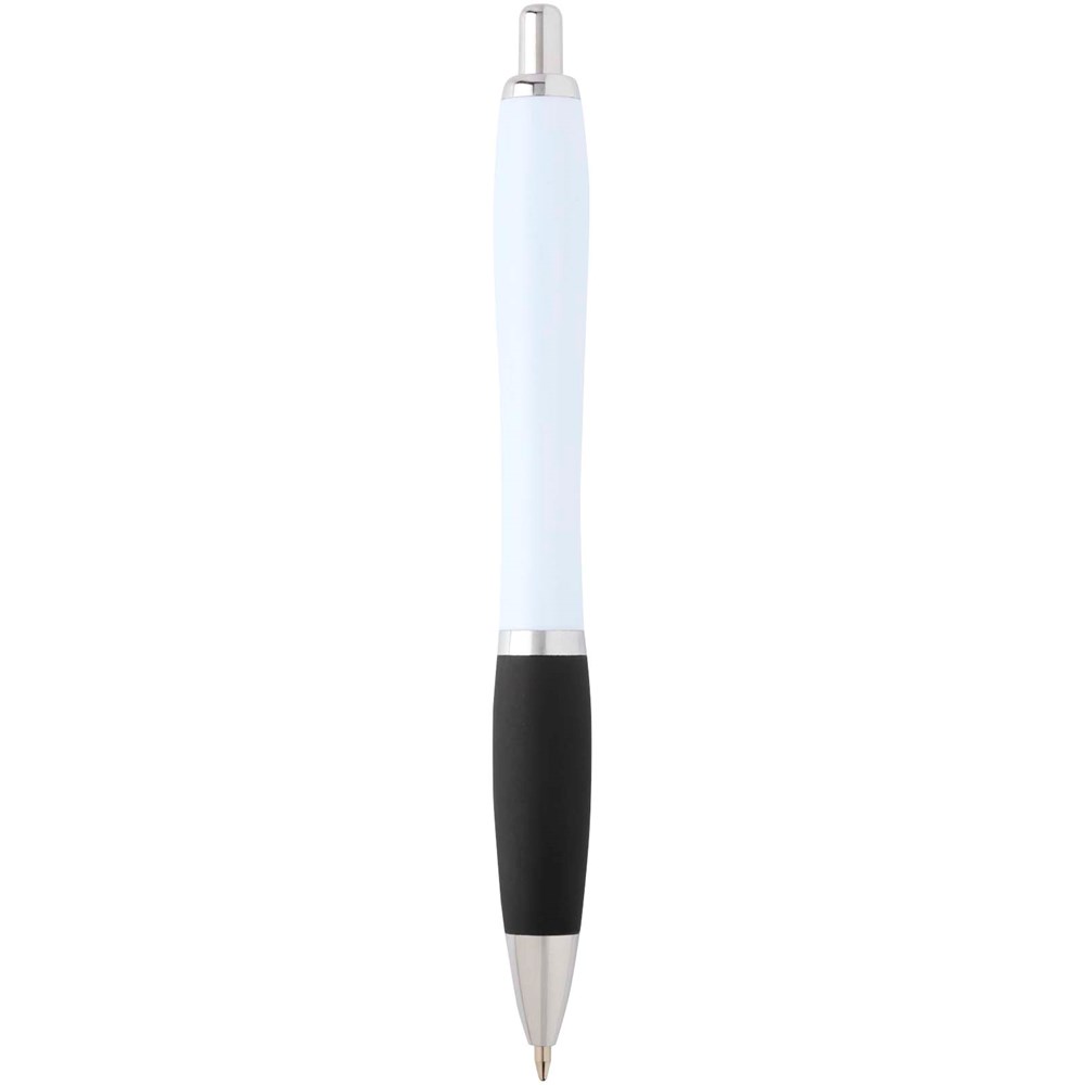 Der Nash Kugelschreiber besitzt ein elegantes, geschwungenes Design und einen weichen Griff. Er besteht aus recyceltem Kunststoff, der hart und stabil ist und dadurch eine lange Lebensdauer hat. Tintenfarbe: Schwarz. Schreiblänge: 1000 Meter. Schreibspitze: 1 mm.