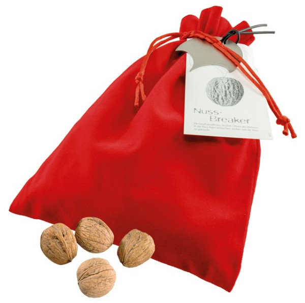 Inhalt: ca. 100 g Walnüssen, Edelstahl-Nussbreaker, Anhängekärtchen