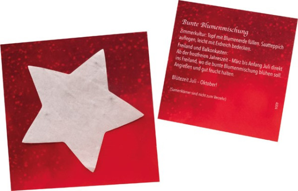 Inhalt: Samenpapier Stern Ø 60 mm, Samen: bunte Blumenmischung