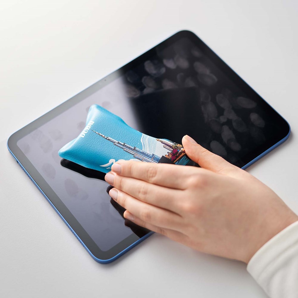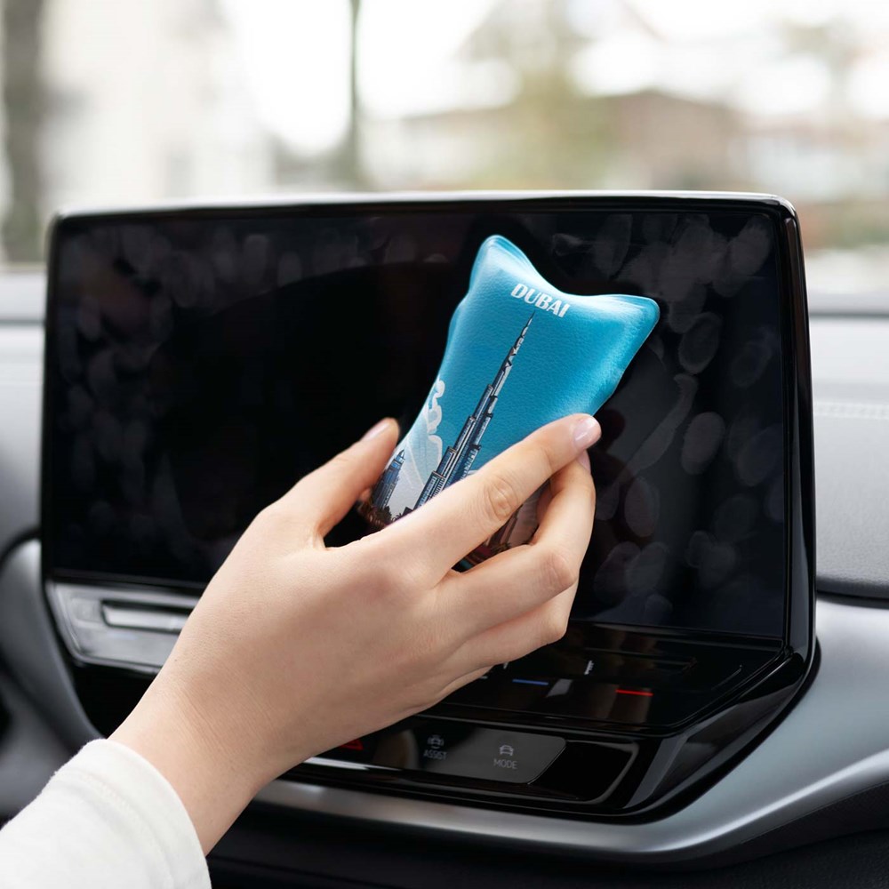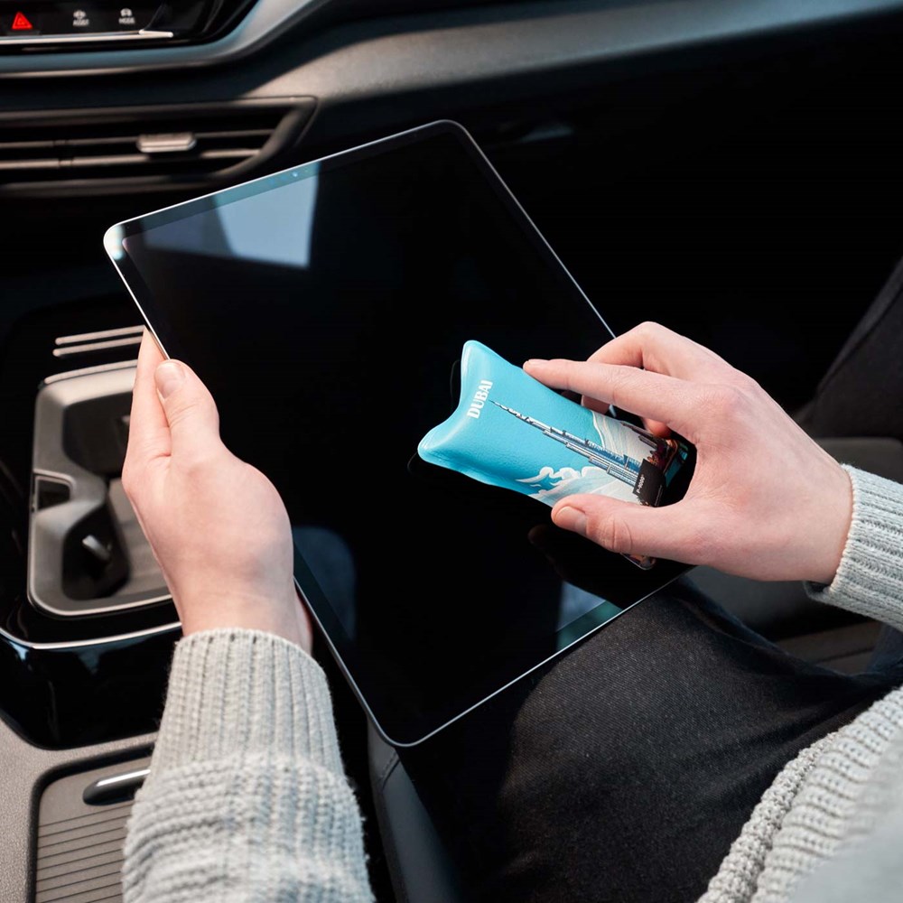 Ob im Auto, zu Hause oder unterwegs – der Displayschwamm überzeugt besonders durch sein Design und den farbintensiven Druck auf hochwertigem, veganem Kunstleder.