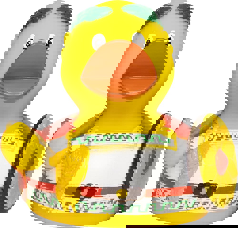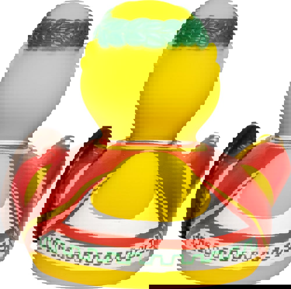 Da Irren menschlich ist, fühlt sich unsere CityDuck® in ihrem schmucken Gewand über jeden Zweifel erhaben. Statt eines Zepters führt sie lieber eine Gabel saftiger Spaghetti mit sich, so kommt das "Dolce Vita" auch beim Regieren nicht zu kurz. Das reich verzierte Kriegsschild dient wahlweise als Teller oder um Futterneider abzuwehren. In jedem Fall ist es eine dekorative Ergänzung zur festlichen Tunika, die den runden Formen unseres flatterhaften Imperators ausgesprochen schmeichelt. Der traditionelle Lorbeerkranz kaschiert das kahle Haupt und eignet sich im Bedarfsfall, um dem kaiserlichen Leben etwas Würze zu verleihen.