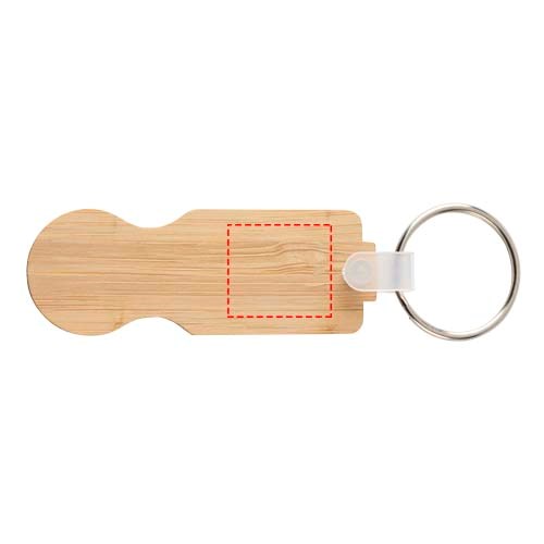 Der Ronan Schlüsselanhänger mit Einkaufswagen-Münze ist aus Bambus. Er passt in die meisten Einkaufswagen und ermöglicht das Öffnen ohne Münzen oder Chips.