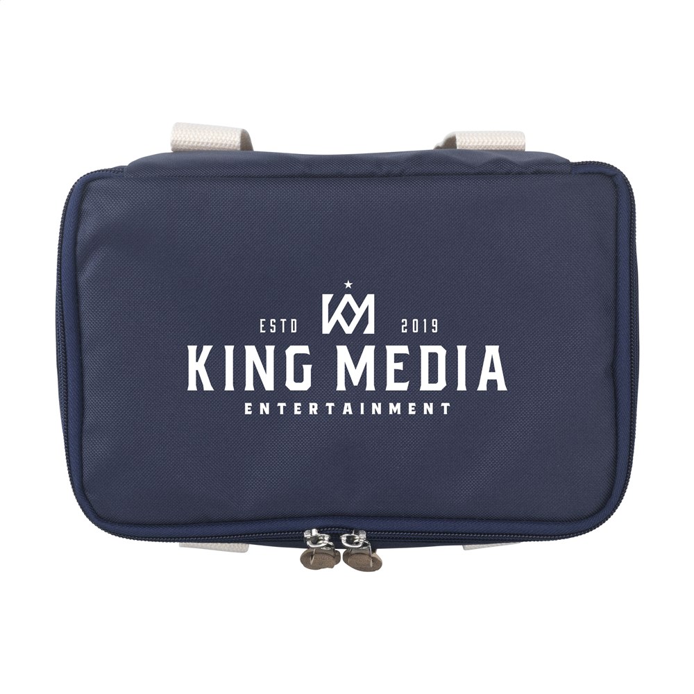 Stilvolle, großzügige Kühltasche der Marke Wooosh. Das Außenmaterial ist aus 100% RPET 600D Polyester gefertigt. Mit einer praktischen Reißverschlusstasche auf der Vorderseite zur Aufbewahrung von Telefon, Ausweis oder Geldbörse. Die attraktiven Akzente, wie die luxuriösen Reißverschlusszüge und die weichen, gewebten Trageriemen, fallen sofort auf. Dank der Isolierschicht bleiben Getränke und Speisen perfekt temperiert. Ideal für ein entspanntes Picknick, einen Tag am Strand oder auf Reisen. GRS-zertifiziert. Fassungsvermögen ca. 9 Liter.