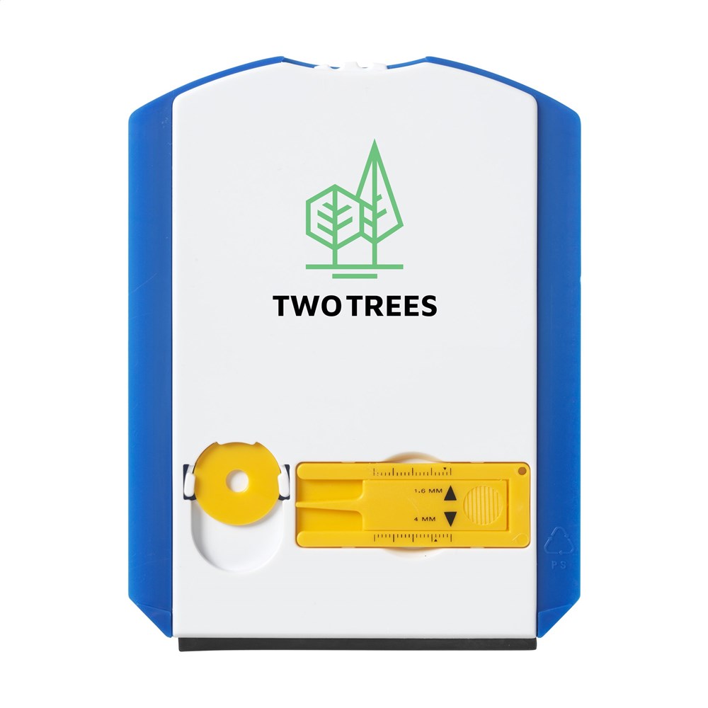 Kunststoff Parkscheibe mit Eiskratzer, gummiertem Scheibenwischer, 1 Einkaufswagenchip und Reifenprofilmesser.
