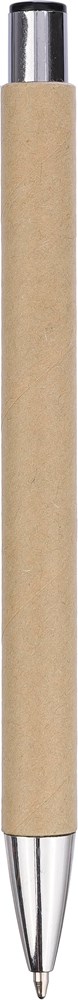 Kugelschreiber aus recyceltem Karton mit verchromten Details. Spitze und Druckknopf aus Kunststoff und Metallclip. Ca. 800 Meter Schreiblänge, Blaue Tinte.