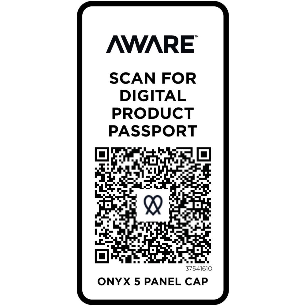 Die Onyx-5-Panel-Kappe ist aus 70 % Recyclingbaumwolle und 30 % recyceltem Polyester hergestellt. Sie ist für eine bequeme Passform mit einem Kopfumfang von 58 cm konzipiert, und lässt sich mit der Metallschnalle leicht und sicher einstellen. Die Kappe besteht aus Cyclo®-Recyclingfasern, bei denen vorsortierte Abfälle verwendet werden, die die Farbe des Garns bestimmen. Diese Fasern verringern nicht nur den Bedarf an neuen Rohstoffen, sondern sind auch Ausdruck des Engagements für eine Kreislaufwirtschaft und verkörpern das Wesen der Abfallvermeidung und der Förderung eines geschlossenen Kreislaufs. Jede Kappe wird außerdem mit einem Aware™ Tracer geliefert. Diese innovative Funktion ermöglicht es den Nutzern, die Herkunft und den Weg ihres Artikels mithilfe eines QR-Codes nachzuvollziehen, wodurch die Transparenz der Lieferkette erhöht und eine stärkere Verbindung zwischen dem Produkt und seinem Herstellungsprozess fördert.