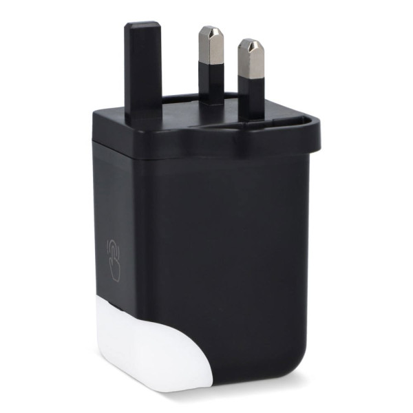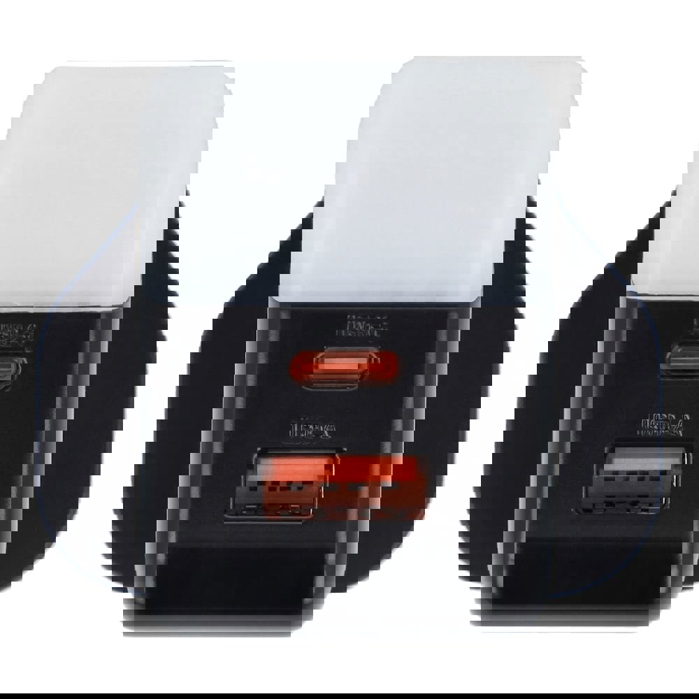 Kompaktes 65-W-GaN-Netzteil für Laptops, Tablets und Smartphones. Mit USB-A (18 W) und Typ-C (65 W), auch bei gleichzeitiger Nutzung (je 9 W). Intelligente Ladeanzeige erlischt bei voller Ladung. Aus feuerhemmendem Recyclingkunststoff.
