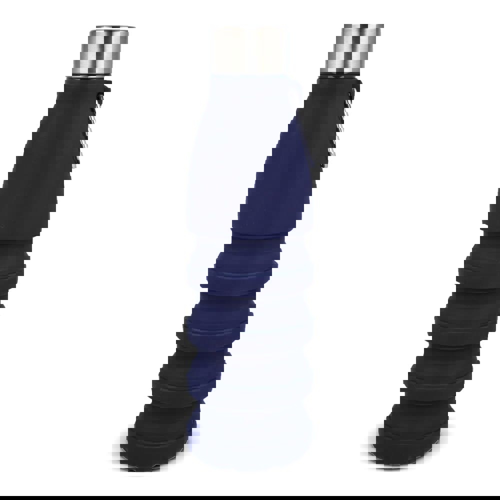 Faltbare Wasserflasche aus Silikon mit Karabinerhaken zum Befestigen an Ihrer Tasche. Sie fasst 550 ml Flüssigkeit.