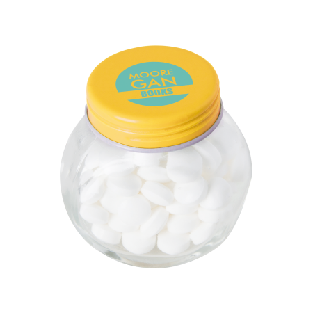 Bonbonglas mini mit ca. 40 g Pfefferminzbonbons, farbiger Deckel